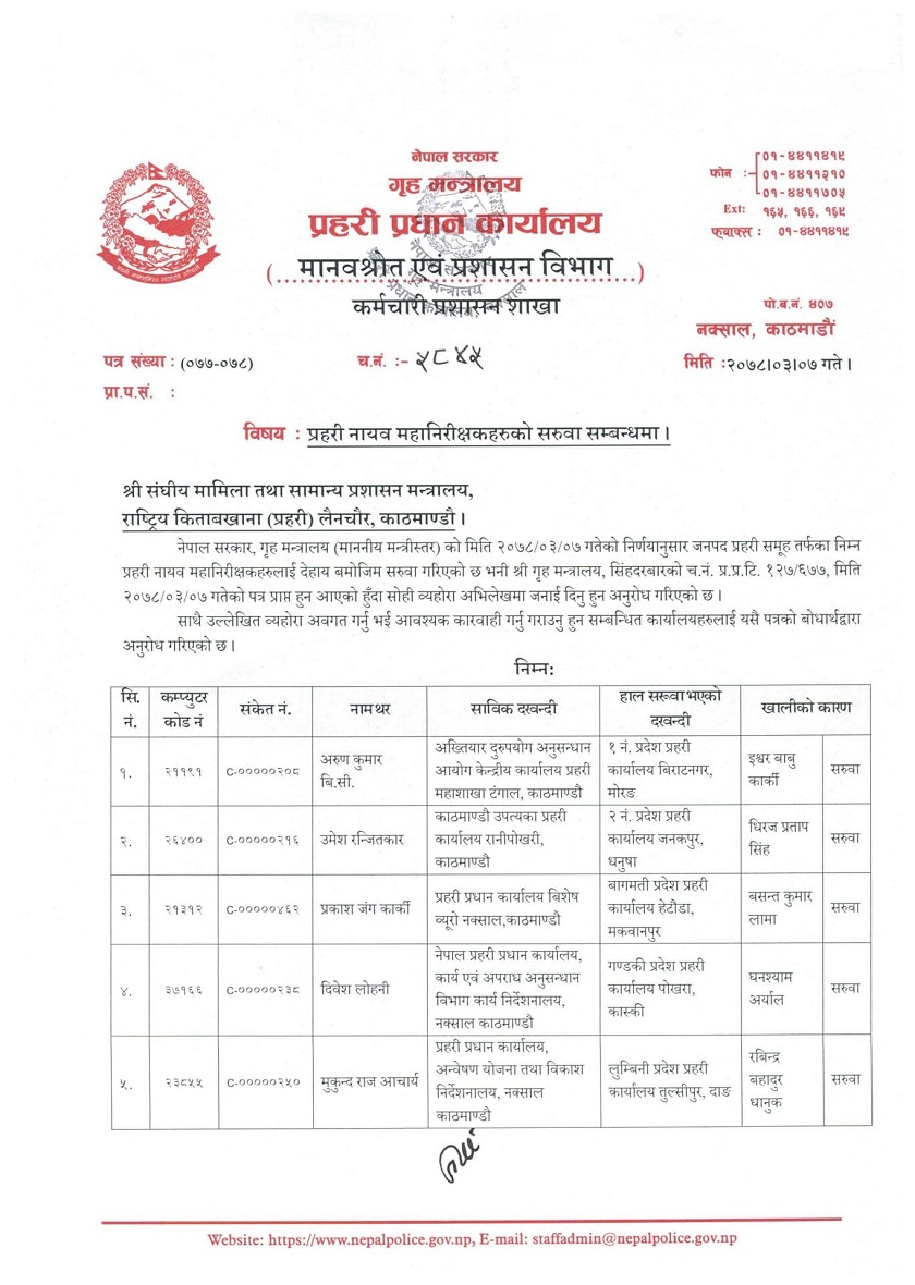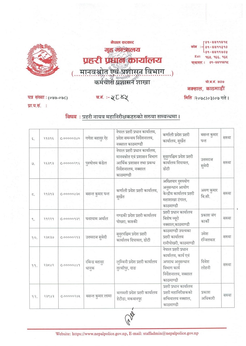 लुम्बिनी प्रदेशमा मुकुन्दराज आचार्य, कर्णालीमा गणेश ऐर र सुदुरपश्चिम प्रदेश प्रहरी कार्यालयमा पुरुषोत्तम कँडेलको सरुवा भएका छन् ।