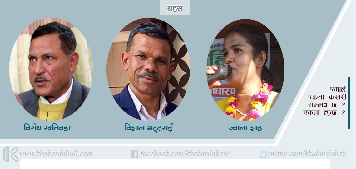सर्वोच्चको फैसलापछि एमालेभित्रको आन्तरिक एकता, पूर्व माओवादीबाट आएका नेताहरुको भविष्य तथा दुवै पक्षबीच भएका कमिकमजोरी कसरी व्यवस्थापन हुनसक्छ भन्ने विषयमा खबरडबलीका संवाददाता गणेश पाण्डेले नेकपा एमालेका नेता त्रय विरोध खतिवडा, बिशाल भट्टराई र ज्वाला कुमारी शाह सँग बहस गरेका छन्–