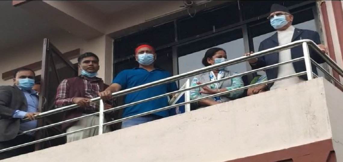 आफ्नै घरको बरन्डामा निस्किएर ओलीले भने 'लाजशरम हराएका मान्छेहरूले विपक्षीसँग मिलेर आफ्नै सरकार ढाले ।'