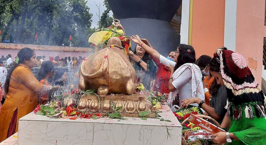 पशुपतिनाथ मन्दिरलगायत देशभरका शिवालयमा विशेषगरी महिला भक्तजनको भीड लाग्ने गरेकामा यसवर्ष कोरोना भाइरसको जोखिम कायमै रहेकाले मूल ढोकामै तालाबन्दी छ । मूल मन्दिर बन्द गरिए पनि बाहिर भक्तजनको भीड लागेको पशुपति क्षेत्र विकास कोषका कार्यकारी निर्देशक डा घनश्याम खतिवडाले राससलाई जानकारी दिनुभयो । पशुपतिनाथ मूल मन्दिरमा पूजाआराधना गर्न नपाए पनि भक्तजन पशुपति क्षेत्रका शिवालयमा पूजाआराधना एवं दर्शन गरेर फर्किएका छन् ।
