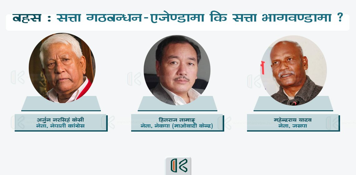 सरकारले मन्त्रिपरिषद् विस्तार साझा नीति तथा कार्यक्रम ल्याउनका लागि गाँठो कहाँ कसियो ? कहिलेसम्म मन्त्रिपरिषद्ले पूर्णता पाउँछ ? सरकारको न्यूनतम साझा नीति तथा कार्यक्रम कस्तो हुनुपर्छ भन्ने विषयमा खबरडबलीका सम्वाददाता गणेश पाण्डेले सत्ता गठबन्धन दल नेपाली कांग्रेसका नेता अर्जुननरसिंह केसी, नेकपा माओवादी केन्द्रका नेता हितबहादुर तामाङ र जसपाका नेता महिन्द्रराय यादवसँग बहस गरेका छन्-