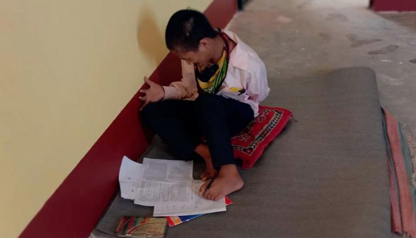 रामपुर । आफूमा मेहनत र इच्छाशक्ति छ भने सहजै लक्ष्यमा पुग्न सकिन्छ भन्ने तै उदाहरण याम खाम्चाले दिएका छन् । दुबै हात नचल्ने र बोल्नसमेत नसक्ने उनी सुन्न र राम्रोसँग देख्न सक्छन् । फरक क्षमता भएका यामले अहिले खुट्टैले लेखेर कक्षा ११ को परीक्षा दिइरहेका छन् । निस्दी गाउँपालिका–२ आनन्दी भन्ज्याङ्स्थित बालहित माविको एक कोठाको कुनामा बसेर अरु विद्यार्थी सरह नै उनी परीक्षामा सहभागी भएका हुन् ।