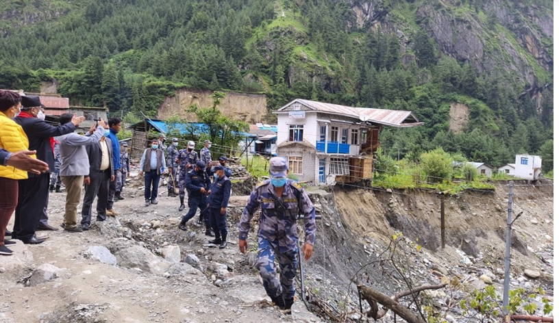 मनाङ । मनसुन शुरु भएसँगै भारी वर्षा हुँदा देशका विभिन्न भागमा प्राकृतिक प्रकोपले ठूलो जनधनको क्षति भएको छ । भू–क्षय र नदी कटानका कारण तटीय क्षेत्रका बस्ती बग्दा कयौँ मानिस घरबारविहीन भएका छन् । यसपटक सबैभन्दा बढी क्षति सिन्धुपाल्चोक र हिमालपारिको जिल्ला मनाङमा भएको छ । बाढीपहिराका कारण भएका क्षतिको स्थलगत निरीक्षणका लागि नेकपा (माओवादी केन्द्र)का अध्यक्ष एवं पूर्वप्रधानमन्त्री पुष्पकमल दाहाल ‘प्रचण्ड’ को नेतृत्वमा ऊर्जा, जलस्रोत तथा सिँचाइमन्त्री पम्फा भुसालसहितको प्राविधिक टोली शनिबार मनाङ पुगेको छ ।
