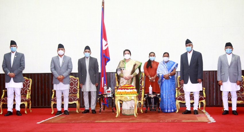 काठमाडौँ । राष्ट्रपति विद्यादेवी भण्डारी, उपराष्ट्रपति नन्दबहादुर पुन, प्रधानमन्त्री शेरबहादुर देउवा, सभामुख अग्निप्रसाद सापकोटाकाे उपस्थितिमा मङ्गलबार शीतल निवासमा प्रदेश नं २ का नवनियुक्त प्रदेश प्रमुख हरिशङ्कर मिश्रले पद तथा गोपनियताको शपथ ग्रहण गरेका छन् ।