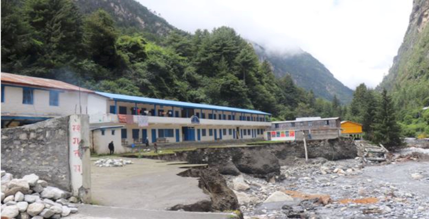 गत जेठ ३१, असार १, साउन २३ र भदौ ७ गते भएको अविरल वर्षाका कारण म्याग्दी नदीमा आएको बाढीको कटानले विद्यालयको खाजाघरसमेत बगाएको छ । विद्यालयको चारकोठे भवन र शौचालय उच्च जोखिममा परेका छन् भने त्यस नजिकै रहेका बस्ती र आमा समूहको भवनसमेत जोखिममा छन् ।