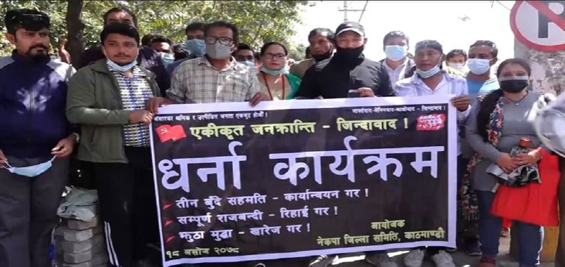 सहमति भएको लामो समयसम्म पनि सहमति पूर्णरुपमा कार्यान्वयन हुन नसकेको भन्दै नेकपा काठमाडौंले काठमाडौंको माइतीघरमा प्रदर्शन गरेका हुन् । प्रदर्शनमा सहभागीहरुले तीन बुँदे सहमति कार्यान्वयन गर, सम्पूर्ण राजवन्दी रिहाइ गर, झुठा मुद्दा खारेज गर लगाएका नारा लगाएका थिए ।