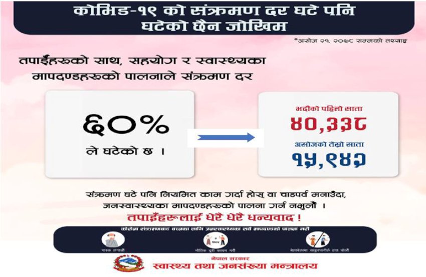 साथै भाइरसबाट बच्न नेपाल सरकारले अख्तियार गरेको नीति तथा सर्वसाधारणले जनस्वास्थ्यका मापदण्ड लागु गर्नु सङ्क्रमण घट्नुको अर्को कारण भएको उनले बताए ।
