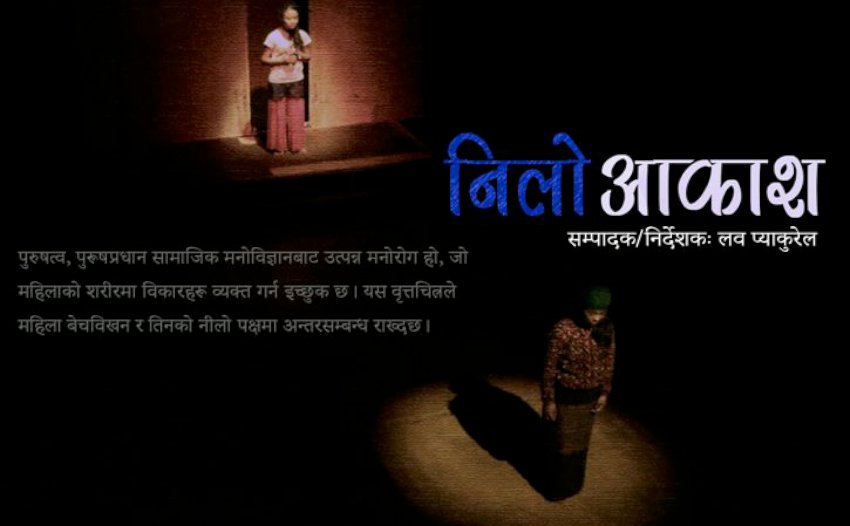 चलचित्रमा असफलताविरूद्ध सफलता, असमानताविरूद्ध समानता र खराबविरूद्ध असलको जीत प्रस्तुत गरिने परम्परालाई तोड्दै गत साता चलचित्र विकास बोर्डको हलमा देखाइएको नेपाली वृत्तचित्र (फिल्म) ‘निलो आकाश’ले नयाँपन प्रस्तुत गरेको छ । लव प्याकुरेलको सम्पादन र निर्देशनमा पाँच वर्षअघि निर्माण गरिएको उक्त वृत्तचित्रमा केही विषय र पात्रलाई परिमार्जनसहित प्रस्तुत गरिएको छ । नेपाली चलचित्रमा परम्परागत शैलीभन्दा भिन्न सिर्जनशील दृष्टिकोणयुक्त सो वृत्तचित्रले आमकथालाई आफ्नो कथावाचन शैली र प्रस्तुतीकरण गरेको छ ।