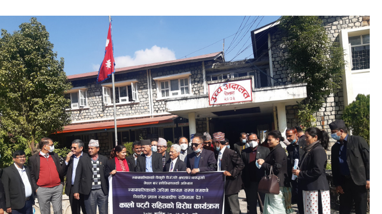 आइतबार न्यायापालिकाको विकृति, विसंगति र भ्रष्टाचारविरुद्ध नेपाल बार एसोसियसनको अभियान अन्तर्गत ‘न्यायापालिकाको गरिमा कायम राख्न नसक्ने विवादित प्रधानन्यायाधीश जबरा राजीनामा देउ’ भन्दै हातमा कालोपट्टीसहितको विरोधमा कानुन व्यवसायी उत्रिएका हुन् ।