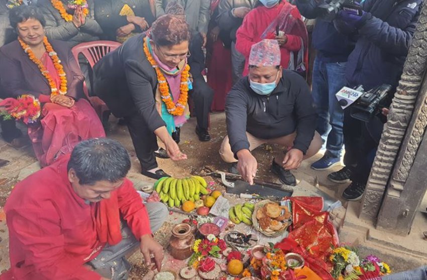 ललितपुर । ऊर्जा, जलस्रोत तथा सिँचाइमन्त्री पम्फा भुसालले ललितपुर महानगरपालिका वडा नं ८ स्थित बालकुमारी मन्दिर पुन:निर्माण कार्यको शिलान्यास गरेकी छन् । आज बिहान उनले मन्दिर पुन:निर्माणको आरम्भ गरेकी हुन् ।