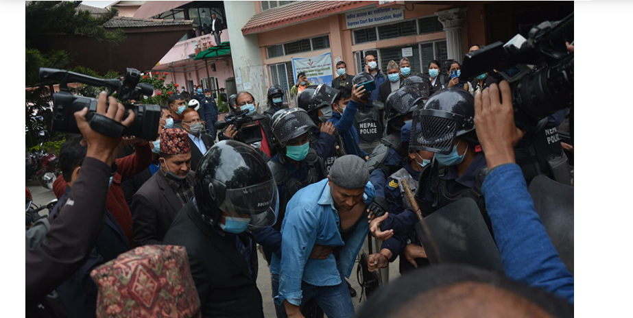 अपरिचित व्यक्ति आएर यसरी कानुन व्यवसायीहरुलाई गालीगलौज र धम्क्याउन थालेपछि कानुन व्यवसायीहरुले गालीगलौजमा संलग्न एक जनालाई नियन्त्रणमा लिएर प्रहरीको जिम्मा लगाए । सो क्रममा केहीबेर बार परिसर तनावग्रस्त बनेको थियो ।