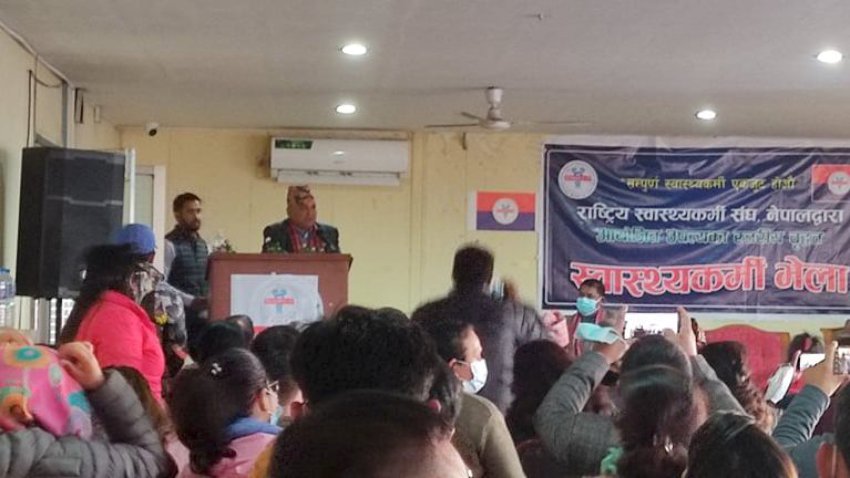 बिहिबार राष्ट्रिय स्वास्थ्यकर्मी संघ नेपालद्वारा आयोजित उपत्यका स्तरिय वृहत भेलालाई सम्बोधन गर्दै उनले भने, ‘विगतदेखि वर्तमानसम्म स्वास्थ्यकर्मीहरुले गरेको योगदान र कोभिड नियन्त्रणामा खेलेको भूमिकाप्रती उच्च सम्मान छ।’