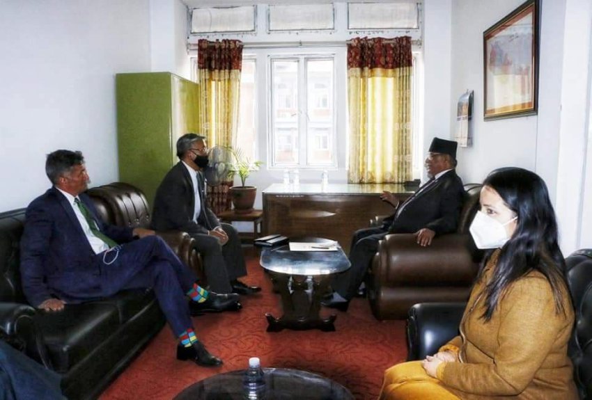 काठमाडौं । नेपाल भ्रमणमा रहेका अमेरिकी सहायक विदेशमन्त्री डोनाल्ड लु ले नेकपा माओवादी केन्द्रका अध्यक्ष पुष्पकमल दाहाल ‘प्रचण्ड’सँग भेटवार्ता भएको छ । सहायक विदेशमन्त्री लुले बिहीबार प्रचण्ड निवास खुमलटारमा दाहालसँग शिष्टाचार भेट गरेका हुन् । भेटवार्तामा नेपालका लागि अमेरिकी राजदूत र्यान्डी बेरी पनि सहभागी थिए ।