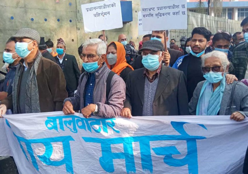 नेपाल बार एशोसिएसन, नेपाल पत्रकार महासंघ, नेपाल जनस्वास्थ्य संघ, नेपाल शिक्षक संघ, नेपाल इन्जिनियर्स एशोसिएसन र बृहत नागरिक आन्दोलनले सर्वोच्च अदालतको गेटदेखि बालुवाटारसम्म न्याय मार्च गरेका हुन् ।