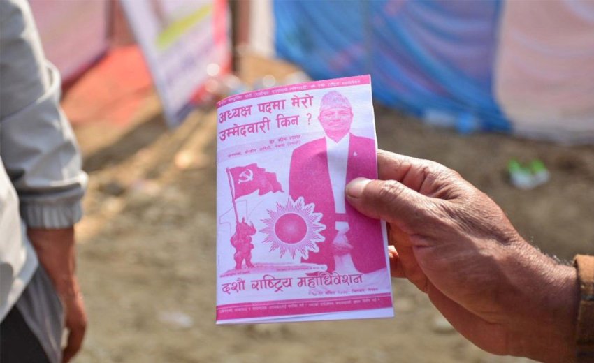 काठमाडौं । नेकपा एमालेको चितवनमा जारी १० औं महाधिवेशनमा अध्यक्षका प्रत्यासी भिम रावलको उम्मेदवारीबारे पर्चा बाड्नेलाई स्वयंमसेवकहरुले बन्देज लगाएका छन् ।
