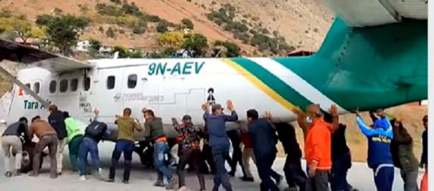 बाजुरा । यतिबेला सामाजिक सैजालमा एउटा भिडियो खुब भइरल भएको छ । त्यो भडियो हो बाजुरा कोल्टी विमानस्थलको । त्यहा यात्रुहरुले नै जहाज धकेलिरहेको दृष्य देखियो ।