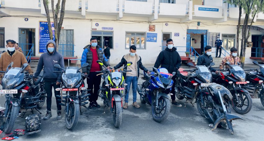काठमाडौँ । काठमाडौ उपत्यकाका विभिन्न स्थानबाट मोटरसाइकल चोरेर बिक्री वितरण गर्ने गिरोहलाई ट्राफिक प्रहरीले नियन्त्रणमा लिएको छ । महानगरीय ट्राफिक प्रहरी महाशाखाबाट सादा पोसाकमा खटिएको टोलीले काठमाण्डौका बिभिन्न स्थानमा बिशेष अपरेसन संचालन गरि मोटरसाईकल चोरी गर्ने, डिस्मेण्टल गर्ने र बिक्रि बितरण गर्ने समूहका ७ जनालाई पक्राउ गरेको हो ।