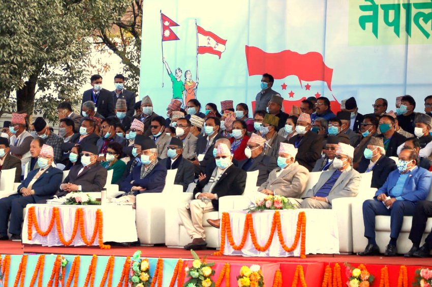 महाधिवेशनमा प्रमुख प्रतिपक्षी दल नेकपा एमालेका अध्यक्ष केपी शर्मा ओली र सत्तारूढ नेकपा माओवादी केन्द्रका अध्यक्ष पुष्पकमल दाहाल करिब १ वर्षपछि एउटै मञ्चमा देखिएका छन् ।