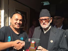 \"dr\"१८ साउन, काठमाडौं । प्रधानमन्त्री सुशील कोइरालालाई कृतिमानी विश्व पर्वतारोही एवम् अल्ट्रा धावक सञ्जय पण्डितले अमेरिका महादेशकै सर्वोच्च शिखर अर्जेन्टिनास्थित अकोन्कगुआ चुचुरोको ढुङ्गा साहसिक चिनोका रुपमा प्रदान गरेका छन् । सात महादेशका सातै सर्वोच्च हिमाल आरोहणको सिलसिलामा सञ्जयको अब अन्टार्टिका महादेशको भिन्सन मसिफ शिखर मात्र चुम्न बाँकी छ । प्रधानमन्त्री कोइरालाले आरोही सञ्जयले विश्व समुदायमा नेपाललाई परिचित गराउन योगदान पु¥याएको भन्दै आगामी आरोहणका लागि सफलताको शुभकामना दिए । आरोही सञ्जयले यसअघि उक्त ढुङ्गाको आधा भाग खेलकुद मन्त्री पुरुषोत्तम पौडेललाई हस्तान्तरण गरिसकेका छन् ।