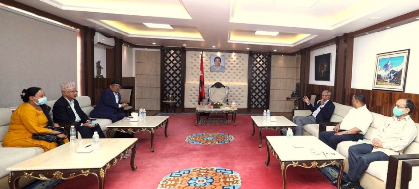 काठमाडौँ । नेकपा एमालेका अध्यक्ष केपी शर्मा ओली र नेपाली कांग्रेसका सभापति शेरबहादुर देउवाबीच भेटवार्ता भएको छ । ओली महासचिव शंकर पोखरेललाई साथ लिएर द...