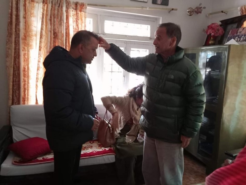 काठमाडौं । नेपाली काँग्रेसका नवनिर्वाचित महामन्त्री गगन थापाले नेता कृष्णप्रसाद सिटौलानिवास गएका छन् । मंगलबार मध्यान्ह महामन्त्री थापा सिटौला निवास चण्डोल पुगेका थिए । थापालाई सिटौलाले टिका र खादा लगाइदिएका हुन् । पुस १ गते महामन्त्रीमा निर्वाचित भएका थापा पुस ६ गते सिटौलाको आर्शिवाद र बधाई लिन चण्डोल पुगेका थिए ।