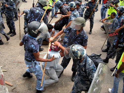 \"parsa-lathi-charge-3\"काठमाडौं । नयाँ संविधानमा दलितहरुको अधिकार समेटीनु पर्ने माग गर्दै एक घण्टे धर्ना दिन बिजुली बजार पुल पुगेका दलित अधिकारकर्मीहरुमाथि प्रहरीले निर्मम लाठी प्रहार गरेको छ । प्रहरीको लाठी चार्जमा एक जनाको खुट्टा भाँचिनुका साथै दर्जनौ दलित अधिकारकर्मी घाइते भएको दलित अधिकारकर्मी नेताहरुले बताएका छन् । संयुक्त दलित संघर्ष समितिको आयोजनामा बिजुली बजार पुल पुगेका उनीहरुमाथि प्रहरीले लाठी प्रहार गर्दा दलित नेता रणेन्द्र बराली, दलजित श्रपाली, मनबहादुर विक, गणेश विश्वकर्मा, कमला हिमचुली लगायतका नेताहरु घाइते भएका छन् । प्रहरीको लाठी चार्जबाट दिलीप हरिजन गम्भिर घाइते भएका छन, उनीको टाउकोमा चोट लागेकाले उनको सिभिल हस्पिटलमा उपचार भइरहेको छ । अन्य घाइतेहरुको समेत सिभिल हस्पीटलमा नै उपचार भइरहेको छ ।