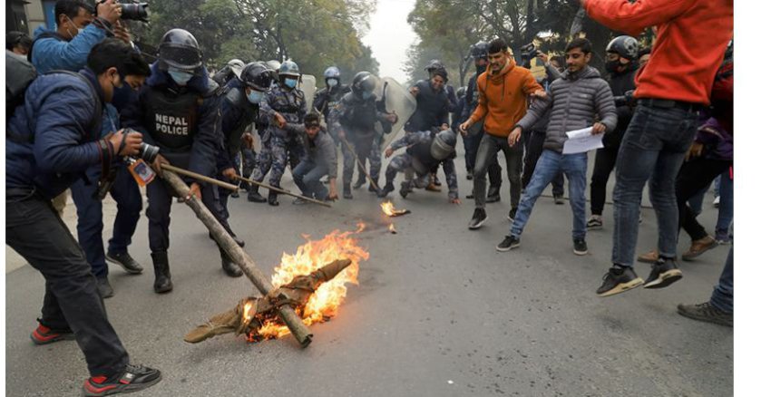 काठमाडौं । अनेरास्ववियुले काठमाडौँको त्रिचन्द्र क्याम्पस अगाडि प्रधानमन्त्री शेरबहादुर देउवाको पुतला दहन गरेको हो । बिहीबार आन्दोलनमा उत्रिएको अनेरास्ववियुले पेट्रोलियम पदार्थको मूल्यवृद्धि गरेको विरोधमा प्रदर्शन गरेको हो ।