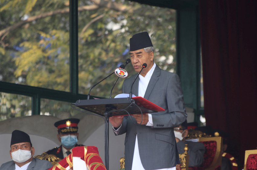 उनले सात सालको राजनीतिक क्रान्तिबाट प्राप्त सफलतामा टेकेर अघि बढ्दै जाँदा आज मुलुकमा सङ्घीय लोकतान्त्रिक गणतन्त्रात्मक र समावेशी शासन प्रणाली स्थापना हुन सकेको र यसलाई अब हामी सबैले थप सबल र सुदृढ तुल्याउन आवश्यक रहेको बताए । प्रधानमन्त्री देउवाले भने, “हामी संविधानसभाबाट नेपाली जनताले चाहेजस्तो संविधान निर्माण गरी त्यसैअन्तर्गत मुलुकमा शासन व्यवस्था सञ्चालन गर्न सफल भएका छौँ हाम्रा भावना र चाहनालाई संविधानमा प्रतिविम्बित गर्न सक्षम भएका छौँ । समाजमा व्याप्त छुवाछुत, जातीय तथा लैङ्गिक भेदभावजस्ता कूरीति र कुप्रथालाई उन्मूलन गर्दै सबैलाई समान अवसर र सहभागिता सुनिश्चित गरी समावेशी विकासको परिकल्पना गरेका छौँ ।”