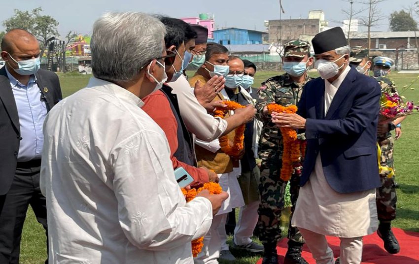 काठमाडौँ । प्रधानमन्त्री शेरबहादुर देउवा आज विभिन्न कार्यक्रममा सहभागी हुन वीरगञ्ज पुगेका छन् । केही समयअघि वीरगञ्ज पुगेका प्रधानमन्त्री देउवालाई स्थानीय पार्टी नेता कार्यकर्ता तथा विभिन्न सरकारी निकायका प्रमुखहरुले स्वागत गरेका थिए ।