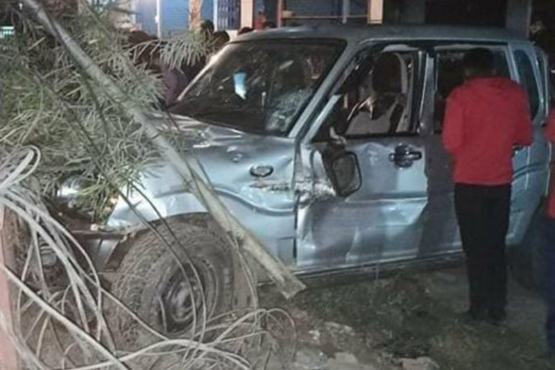 प्रहरी चेकिङमा गाडी अनियन्त्रित भई सोही स्थानको पान पसल र मोटरसाइकलमा समेत ठक्कर दिएको प्रहरीले जनाएको छ।