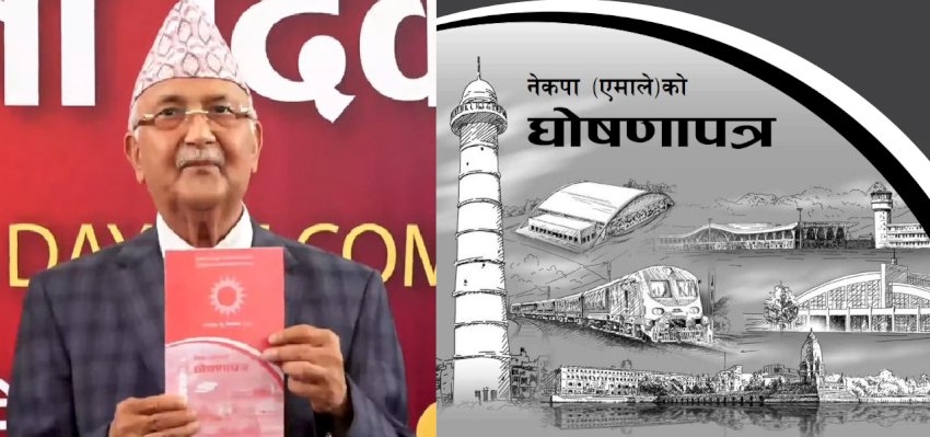 एमालेको केन्द्रीय कार्यालयमा आयोजित कार्यक्रममा पार्टी अध्यक्ष केपी शर्मा ओलीले घोषणापत्र सार्वजनिक गरेका हुन् । भने, कार्यक्रममा वरिष्ठ उपाध्यक्ष ईश्वर पोखरेलले घोषणापत्र पढेर सुनाएका थिए ।