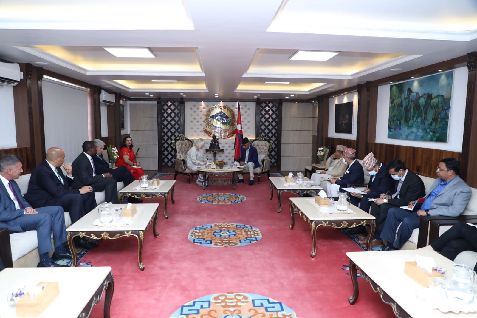 काठमाडौँ । नेपाल भ्रमणमा रहेको अमेरिकी सांसदहरूको टोलीलाई प्रधानमन्त्री शेरबहादुर देउवाले भेट गरेका छन् । प्रधानमन्त्रीको सरकारी निवास बालुवाटारमा शनिबार बिहान देउवाले ५ सदस्यीय टोलीलाई भेट गरेका हुन् ।यस भेटबारे प्रधानमन्त्रीले जानकारी दिएका थिए ।