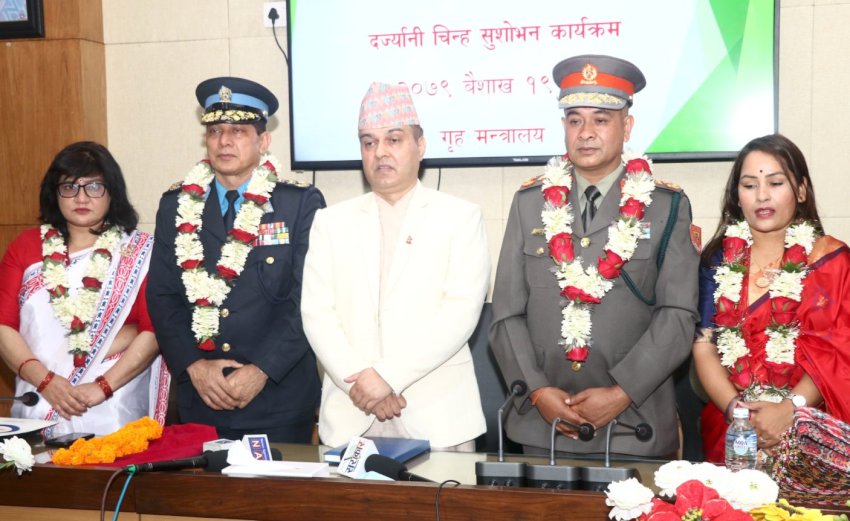 काठमाडौं । नेपाल प्रहरी र सशस्त्र प्रहरीका नवनियुक्त महानिरीक्षक (आईजीपी)द्वय धिरजप्रताप सिंह र राजु अर्यालले दर्ज्यानी चिह्न लगाएका छन् ।