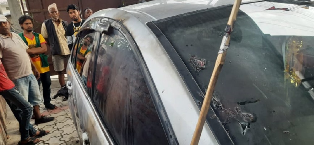 पेट्रोल छर्किएर कारको अगाडि र पछाडी लाइटर बालेर आगो लगाएको सिसी क्यामेरा फुटेजमा देखिएको प्रहरीको भनाइ छ।
