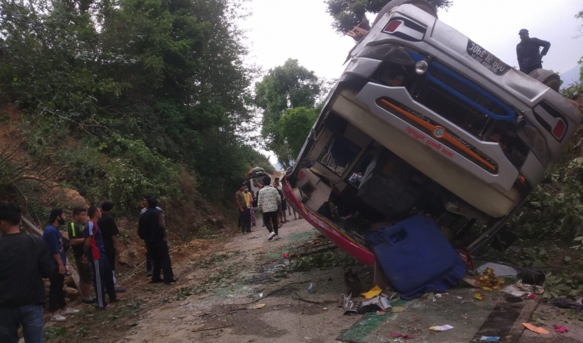 धनगढी । कैलालीको अत्तरियाबाट बाजुरा जाँदै गरेको बस डोटीमा दुर्घटना भएको छ। बिहीबार डोटीको पूर्वीचौकी गाउँपालिका ४ सानागाउँमा सुपप्र ०१ ००१ ख ३१०८ नम्बरको बस दुर्घटना भएको प्रहरीले बताएको छ।
