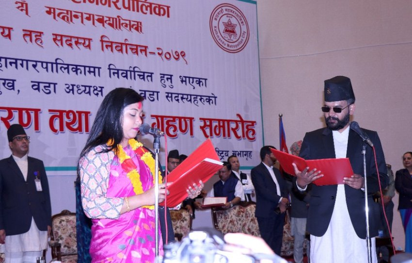 राष्ट्रिय सभागृहमा आयोजित सपथ ग्रहण समारोहमा मेयर बालेनले पहिलोपटक नेपाली भाषामा शपथ लिएर दोस्रोपटक नेवारी भाषाबाट शपथ लिएका थिए भने उपप्रमुख सुनिताले नेवारी भाषामा मात्रै शपथ लिएकी थिइन्