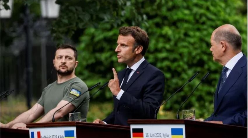 फ्रान्सका राष्ट्रपति, जर्मनीका चान्सलर ओलाफ सोल्ज र इटलीका प्रधानमन्त्री मारिओ ड्रागी बिहीवार बिहान युक्रेन पुगेर राष्ट्रपति भोलिदिमिर जेलेन्स्कीसँग भेटेका छन्।