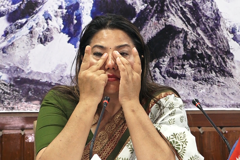 उनी मन्त्रालय छाड्ने बेलामा आयोजित पत्रकार सम्मेलनका रोइन्। त्यसको चौतर्फि टिकाटिप्पणी भइरहेको छ।