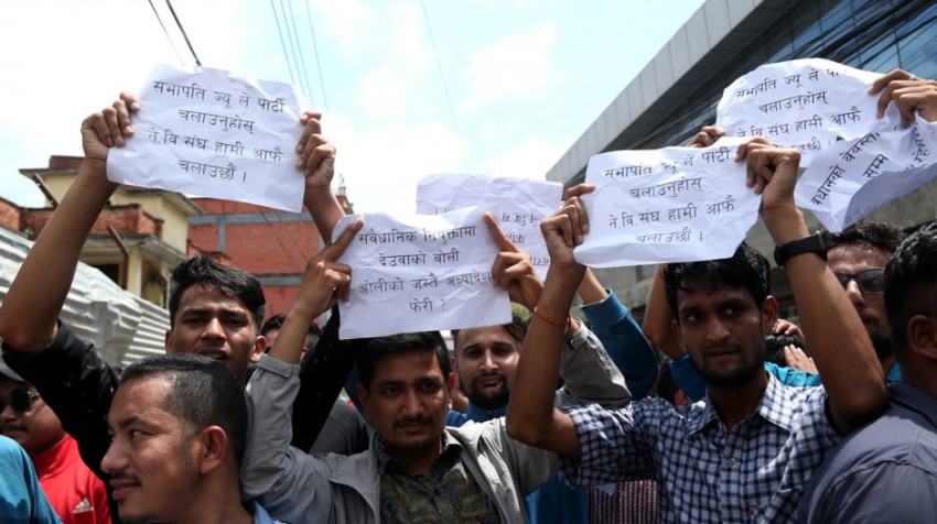 काठमाडौँ । नेपाली कांग्रेसका सभापति तथा प्रधानमन्त्री शेरबहादुर देउवाविरुद्व नेता शेखर कोइराला पक्षका तरुण र विद्यार्थीहरुले नाराबाजी गरेका छन् ।कांग्रेसको केन्द्रीय कार्यसमिति बैठकअघि उनीहरुले देउवाविरुद्व विभिन्न नाराहरु लेखिएका प्ले(कार्डसहित प्रदर्शन गरेका हुन् ।