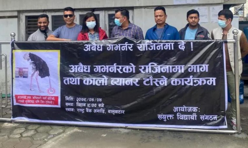 नेपाली कांग्रेसको विद्यार्थी संगठन नेविसंघ, नेकपा माओवादी केन्द्रको अखिल क्रान्तिकारी र एकीकृत समाजवादीको अनेरास्ववियूले मंगलबार संयुक्त विज्ञप्ति जारी गरी गभर्नर बर्खास्तीको माग गर्दै चरणवद्ध आन्दोलन घोषणा समेत गरेका छन् ।