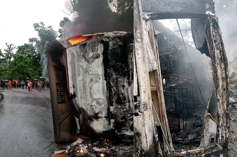 कञ्चनपुरबाट काठमाडौं आउँदै गरेको ना ५ ख ५१०० नम्बरको बस आफै अनियन्त्रित भई सडक छेउमा पल्टिदा बसमा आगो लागेको नवलपुर प्रहरी प्रमुख डिएसपी सन्तोष पाठकले जनाकारी दिए।