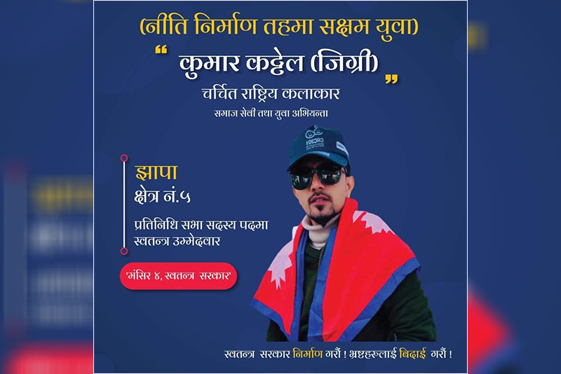 काठमाडौं । जिग्रीको नामले चिनिने हास्य कलाकार कुमार कट्टेलले प्रतिनिधिसभाको चुनावमा उम्मेदवारी दिने सोच रहेको बताएका छन्।