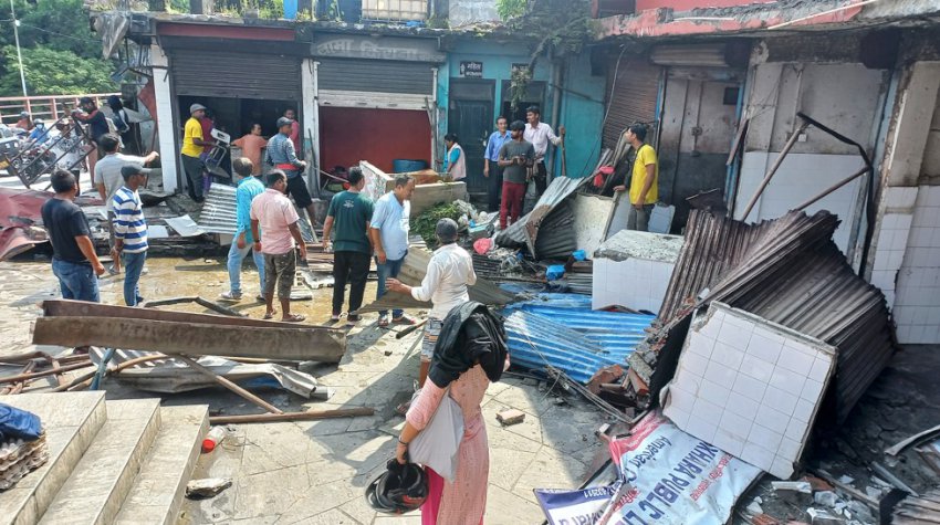 कास्की । पोखरा महानगरपालिकाले आफ्नो स्वामित्वमा रहेका दुईवटा भवनमा डोजर चलाएको छ । पोखरा–९ महेन्द्रपुलस्थित महानगरका भवन भत्काउन आज डोजर चलाइएको हो । महानगर प्रमुख धनराज आचार्य, वडानं ९ का वडाध्यक्ष दीपेन्द्र मर्सानी सहित नगर प्रहरीसहितको टोलीले भवनका सटर भत्काउन सुरु गरेको हो ।
