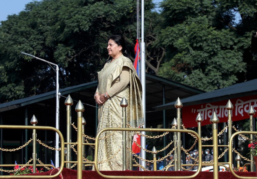 काठमाडौँ । राष्ट्रपति विद्यादेवी भण्डारी आठौँ संविधान दिवस तथा राष्ट्रिय दिवसका अवसरमा आज मूल समारोह समितिद्वारा सैनिक मञ्च, टुँडिखेलमा आयोजित समारोहमा सहभागी भइन् ।