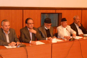 \"sirsaकाठमाडौँ । प्रमुख चार दलका शीर्ष नेताहरुले प्रदेशको सीमाङ्कनका सम्बन्धमा जनभावना र राष्ट्रिय हितलाई ध्यानमा राखी उचित समाधान पहिल्याउने प्रतिबद्धता ब्यत्त गरेका छन् । संविधानसभामा प्रतिनिधित्व गर्ने चार दलका तर्फबाट जनताका नाममा अपिल जारी गर्दै उनीहरुले प्रदेशको सीमाङ्कनको विषयलाई लिएर मध्यपश्चिमको सुर्खेतमा भएको अप्रिय घटनाले चिन्तित र गम्भीर तुल्याएको बताएका छन् । चार दलका शीर्ष नेताद्वारा अपिल सार्वजनिकका क्रममा आयोजित पत्रकार सम्मेलनमा नेपाली काँग्रेसका सभापति एवम् प्रधानमन्त्री सुशील कोइरालाले नेपालको सन्दर्भमा सङ्घीयता नयाँ विषय भएकाले जनताबाट विविध प्रतिक्रिया आउनु स्वाभाविक भएको बताए । उनले जनताका भावना र राष्ट्रिय हितलाई ध्यानमा राखी उचित समाधान पहिल्याउने प्रयत्न गरिने बताए । प्रधानमन्त्री कोइरालाले भने ‘यस घडीमा सम्पूर्ण जनतालाई संयम धारण गर्न र सबै प्रकारका आन्दोलन रोकी उपयुक्त सुझावद्वारा सहयोग पु¥याई समस्याको समाधानको प्रतीक्षा गर्न हामी हार्दिक अपिल गर्दर्छौं ।’ इतिहासमा पहिलोपटक नेपाली जनताका चाहनाअनुसार संविधानसभाबाट संविधान निर्माण कार्य अन्तिम चरणमा पुगेको बताउँदै प्रधानमन्त्री कोइरालाले यसलाई सफल पार्न सबैलाई एकजुट हुन आह्वान गरे । पत्रकार सम्मेलनमा नेकपा ९एमाले० का अध्यक्ष केपी शर्मा ओलीले नेपाली जनताले आफैँले आफ्नो संविधान निर्माण गर्ने आकाङ्क्षा र प्रयास सफलताको बिन्दुमा पुग्न लागेको बताए । केही दिनभित्रै संविधानसभाबाट संविधान जारी हुन लागेको बताउँदै अध्यक्ष ओलीले संविधान समयमै जारी गर्न विविध विचार र फरक धारणा राख्ने सबैको सहमति हुने मिलन बिन्दु पहिल्याइने विश्वास व्यक्त गरे । अध्यक्ष ओलीले मस्यौदाबारे संविधानसभा, संवैधानिक–राजनीतिक सहमति तथा संवाद समिति र मस्यौदा समितिमा अझै छलफल हुने भएकाले आफ्ना माग संयमित भएर राख्न आग्रह गरे। भावना र आवेशका आधारमा नभई तर्क र औचित्यका आधारमा सबैलाई मान्य हुने मिलनबिन्दु पहिल्याउनुपर्ने बताउँदै अध्यक्ष ओलीले भने– ‘सबै मिलेर संविधान बन्न नदिने खेललाई असफल पार्नुपर्छ । एकीकृत नेकपा ९माओवादी० का अध्यक्ष पुष्पकमल दाहालले नेपाली जनताले आफ्नो संविधान आफँैले बनाउने २००७ सालदेखिको सपना पूरा हुनै लाग्दा एकपटक फेरि त्यसमा खतरा उत्पन्न भएको बताउँदै त्यसप्रति सबै सतर्क हुनुपर्ने विचार व्यक्त गरे । संविधानसभाबाट संविधान बन्ने प्रक्रिया कुनै पनि हालतमा नरोकिने विश्वास दिलाउँदै अध्यक्ष दाहालले भने – ‘संविधानसभाबाट संविधान बन्न नदिने तत्वले फाइदा नउठाऊँन भन्नेमा सबै सतर्क हुनैपर्छ ।संविधान राजनीतिक सम्झौता र शक्ति सन्तुलनको दस्ताव