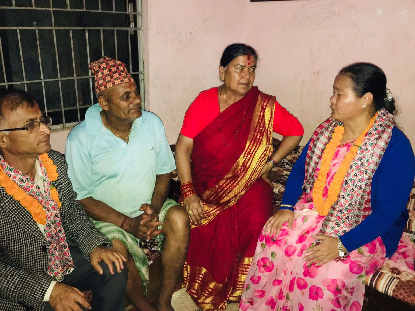 उम्मेदवारी दर्ता गरेलगत्तै उनी बेपत्ता परिवार भेट्न काठमाडौं २ मा रहेको कागेश्वरी मनोहरा वडा नम्बर –६ मूलपानीमा पुगेकी थिइन्। मूलपानी पुगेर घर्तीले बुद्धि पोखरेल ‘अमृत’का बाबा–आमासँग भेटेर जितको शुभकामना तथा आर्शिवाद ग्रहण गरेकी छन्।