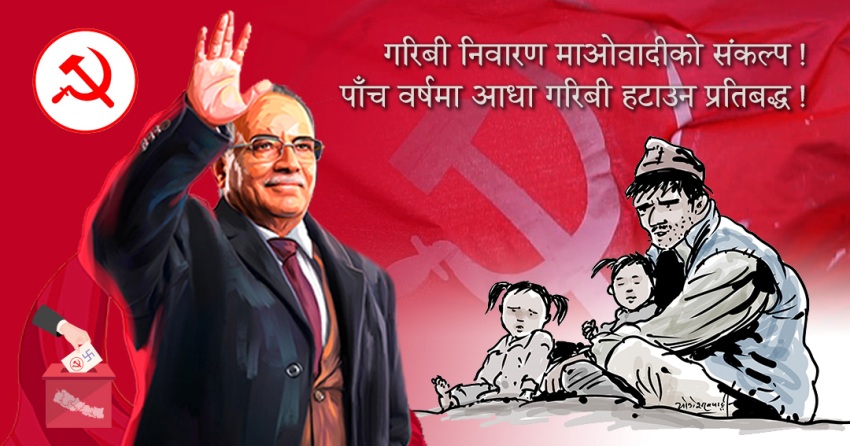 माओबादीले मुलुकमा जनसङ्ख्याको ठुलै हिस्सा अझ पनि गरिबीको रेखामुनि रहेको भन्दै यसलाई हटाउन ७ बुँदे प्रतिबद्धता जाहेर गरेको छ ।