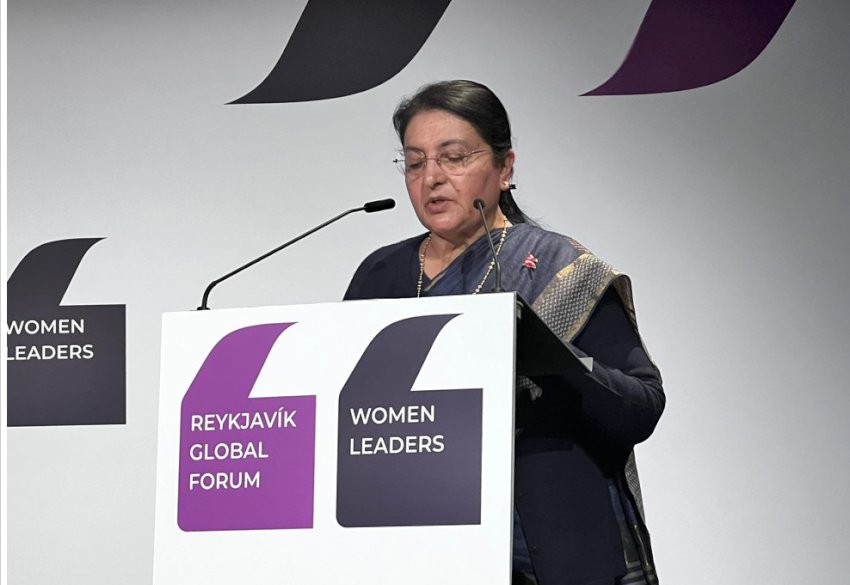 गणतन्त्र आइसल्याण्डको राजधानी रेक्याभिकमा आयोजना भएको रेक्याभिक ग्लोबल फोरम (वुमन लिडर्स) मा विशेष सम्बोधन गर्दै राष्ट्रपति भण्डारीले समानता र न्यायपूर्ण समाजको निर्माणका लागि शिक्षा, सार्वजनिक स्वास्थ्य, रोजगारी तथा समावेशी सामाजिक, राजनीतिक प्रबन्धमा लगानी गरिरहेको जनाएकी हुन् ।