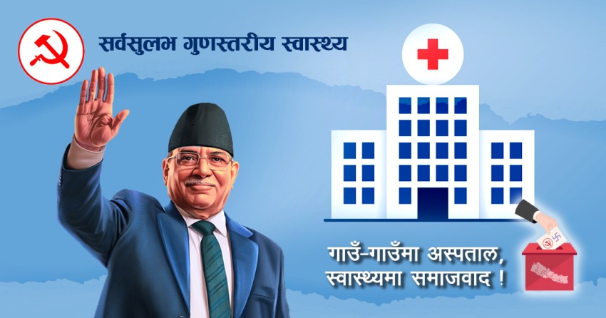 माओवादीले सर्वसुलभ गुणस्तरीय स्वास्थ्य र गाउँ–गाउँमा अस्पताल बनाइ स्वास्थ्यमा समाजवाद ल्याउने अवधारणा अघि सारेको छ।