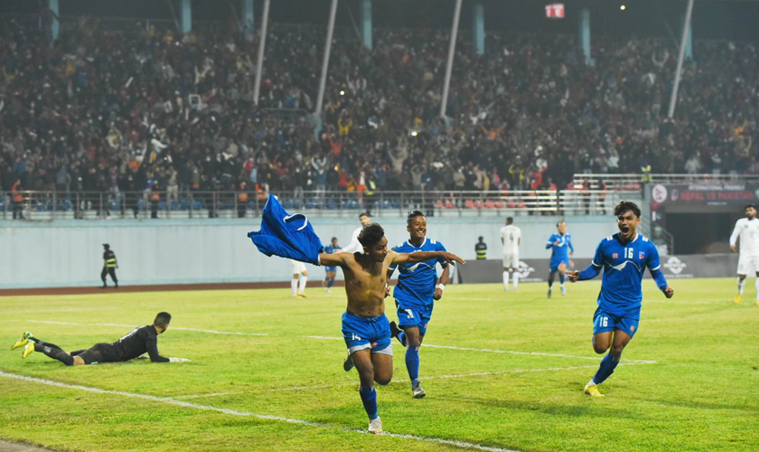 काठमाडौँ । अन्जन विष्टको गोलमा नेपाली राष्ट्रिय फुटबल टिमले पाकिस्तानविरुद्ध मैत्रीपूर्ण खेलमा जित निकालेको छ । बुधबार भएको खेलमा नेपालले पाकिस्तानलाई १-० गोल अन्तरले हराएको हो । त्यस जितमा अन्जन विष्टले ८३ औं मिनेटमा निर्णायक गोल गरे ।
